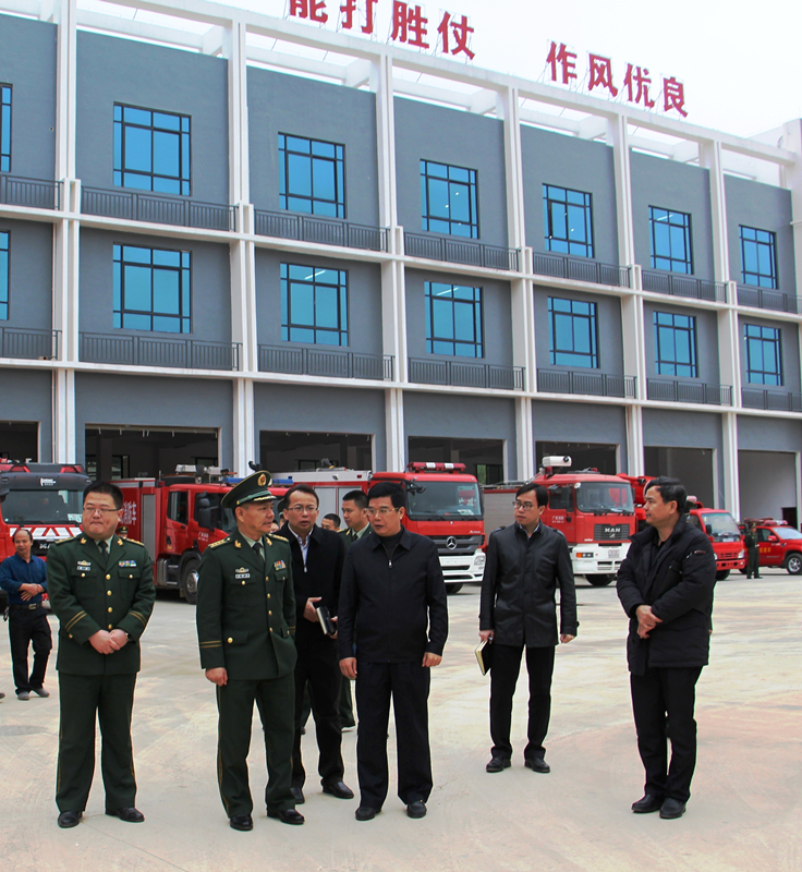 2月23日上午,南寧市消防支隊(duì)支隊(duì)長(zhǎng)鄧錫中在經(jīng)開(kāi)區(qū)黨工委書記、管委會(huì)主任何尚漢、經(jīng)開(kāi)區(qū)消防大隊(duì)大隊(duì)長(zhǎng)詹寧、綠港集團(tuán)董事長(zhǎng)楊東等領(lǐng)導(dǎo)的陪同下到綠港集團(tuán)承建的吳圩空港新城消防站開(kāi)展調(diào)研。