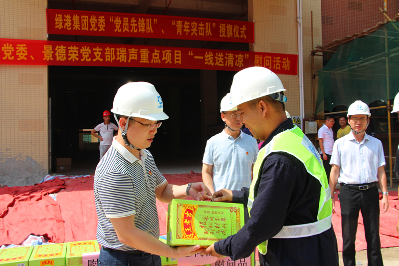 此次活動(dòng)也是綠港集團(tuán)黨委在今年開(kāi)展“四個(gè)一線(xiàn)”爭(zhēng)先鋒、創(chuàng)建黨建示范品牌工作以來(lái),在項(xiàng)目建設(shè)一線(xiàn)開(kāi)展創(chuàng)建“黨員攻堅(jiān)先鋒隊(duì)”活動(dòng)的重要舉措之一?!八膫€(gè)一線(xiàn)”是綠港集團(tuán)黨委圍繞經(jīng)開(kāi)區(qū)黨工委加強(qiáng)基層黨建三年行動(dòng)計(jì)劃,結(jié)合集團(tuán)公司項(xiàng)目建設(shè)、企業(yè)服務(wù)、招商銷(xiāo)售、項(xiàng)目融資的四個(gè)任務(wù),以“抓黨建促發(fā)展,抓品牌促提升”為主題,組織號(hào)召?gòu)V大黨團(tuán)員積極開(kāi)展在項(xiàng)目一線(xiàn)創(chuàng)建“黨員攻堅(jiān)先鋒隊(duì)”、在服務(wù)企業(yè)一線(xiàn)創(chuàng)建“服務(wù)示范標(biāo)兵(窗口)”、在招商銷(xiāo)售一線(xiàn)創(chuàng)建“一個(gè)黨員一面旗,我為綠港做代言”、在項(xiàng)目融資一線(xiàn)“爭(zhēng)做黨員領(lǐng)頭雁”的活動(dòng)。活動(dòng)開(kāi)展以來(lái),集團(tuán)黨建真正實(shí)現(xiàn)了“走前頭、作表率”的目標(biāo),引導(dǎo)集團(tuán)公司全體黨員干部轉(zhuǎn)變工作作風(fēng)、提高工作效能、強(qiáng)化服務(wù)意識(shí),在促進(jìn)綠港集團(tuán)樹(shù)立國(guó)企黨建標(biāo)桿,不斷提升社會(huì)形象起到引領(lǐng)作用。授旗儀式結(jié)束后,綠港集團(tuán)與會(huì)領(lǐng)導(dǎo)還給項(xiàng)目一線(xiàn)參建人員送上了王老吉、西瓜水果等清涼慰問(wèn)品,鼓勵(lì)他們繼續(xù)發(fā)揚(yáng)綠港鐵軍精神,急難險(xiǎn)重顯身手,同時(shí)要注意防暑降溫、保重身體,更好地為項(xiàng)目建設(shè)做貢獻(xiàn)。(綠港集團(tuán) 陽(yáng)正輝、張彩秀/文、圖)