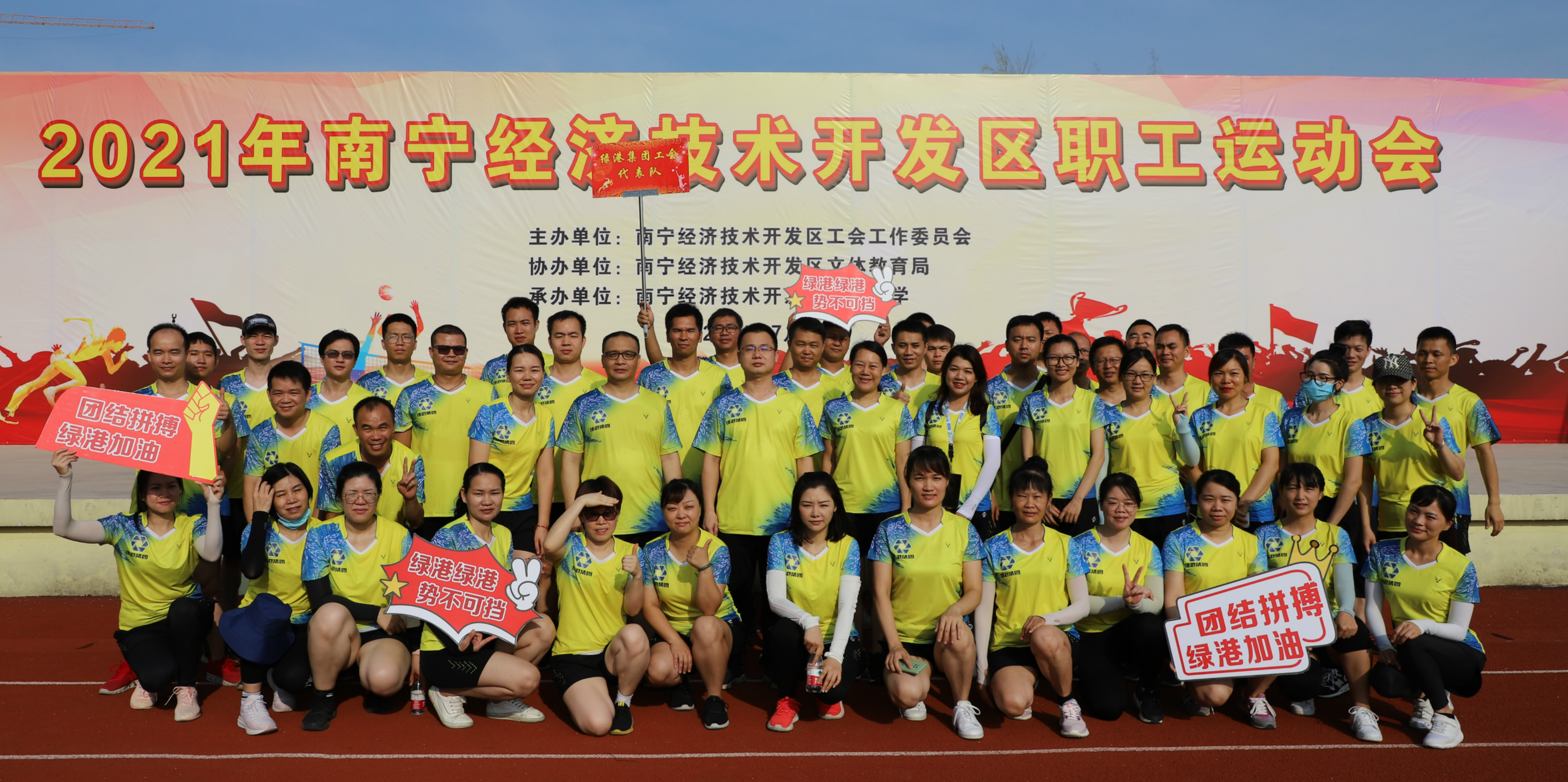 7月17日,南寧經(jīng)濟(jì)技術(shù)開(kāi)發(fā)區(qū)2021年職工運(yùn)動(dòng)會(huì)在經(jīng)開(kāi)區(qū)第一小學(xué)舉行。經(jīng)開(kāi)區(qū)14支職工代表隊(duì)參加此次比賽,綠港集團(tuán)近70名職工代表參加比賽。