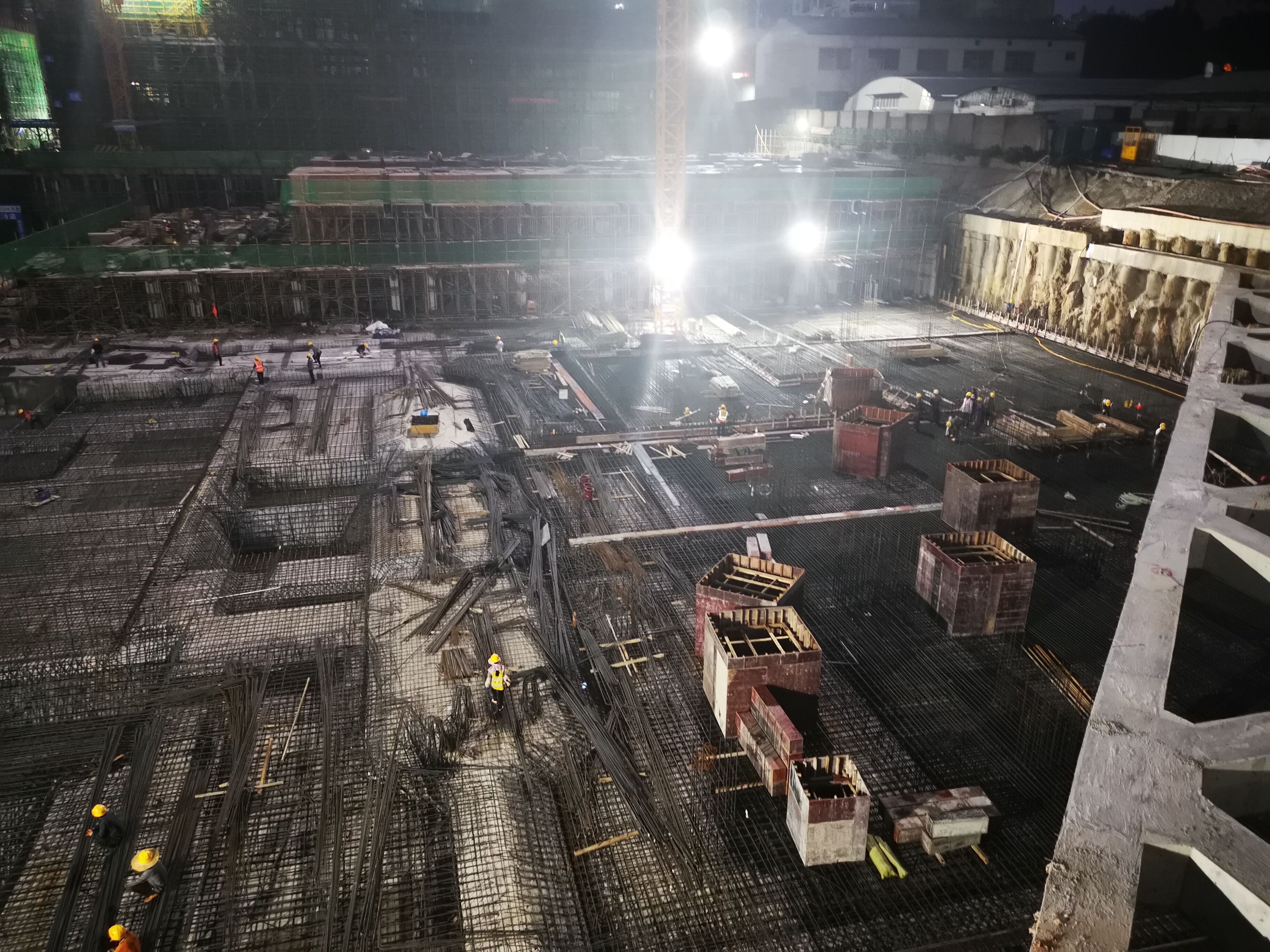 2021年2月底收到支護(hù)樁和水平混凝土支撐梁施工圖紙后,項(xiàng)目推進(jìn)小組立即組織項(xiàng)目部結(jié)合雨季施工特點(diǎn)制定科學(xué)合理的搶工方案,倒排工作計(jì)劃、細(xì)化實(shí)施方案、強(qiáng)化責(zé)任落實(shí),能早則早、能快則快。因項(xiàng)目處于鬧市,搶工首要解決的就是施工擾民問題。在推進(jìn)小組組長、嘉通公司副總經(jīng)理何小勇帶領(lǐng)下,相關(guān)組員主動(dòng)加強(qiáng)與建設(shè)行政主管部門和環(huán)保部門溝通,說明、強(qiáng)調(diào)項(xiàng)目搶險(xiǎn)的必要性,盡快征得了相關(guān)部門的許可,部分施工內(nèi)容順利得以24小時(shí)連續(xù)施工。分管該項(xiàng)目的嘉通公司工程一部副經(jīng)理秦桂暢積極發(fā)揮自己的溝通協(xié)調(diào)能力,幫助施工單位主動(dòng)與社區(qū)、周邊居民溝通,取得各方理解,以保障搶工計(jì)劃順利開展。項(xiàng)目業(yè)主代表趙政生根據(jù)現(xiàn)場施工實(shí)際情況,組織各方會(huì)議及時(shí)溝通調(diào)整,合理安排施工工序,盡可能將產(chǎn)生噪音的工作安排在白天進(jìn)行。同時(shí),搶工階段正值南寧的雨季,推進(jìn)小組加強(qiáng)雨季施工組織,協(xié)調(diào)施工單位在雨天安排受雨水影響較小的工作,項(xiàng)目現(xiàn)場形成了“大雨小干,小雨大干,不下雨拼命干”的局面。尤其是在土方外運(yùn)期間,要求施工單位協(xié)調(diào)各方關(guān)系,調(diào)配工料機(jī)的關(guān)系,天晴做到“人停機(jī)不?!钡膿尮顟B(tài)。各項(xiàng)措施保證了項(xiàng)目在兩個(gè)月的時(shí)間里基本保持在24小時(shí)搶工狀態(tài),通過推進(jìn)小組及參建單位夜以繼日的努力,2021年4月20日項(xiàng)目西北角新增72根支護(hù)樁、水平混凝土支撐梁以及50000m3土方外運(yùn)工作得以完成。