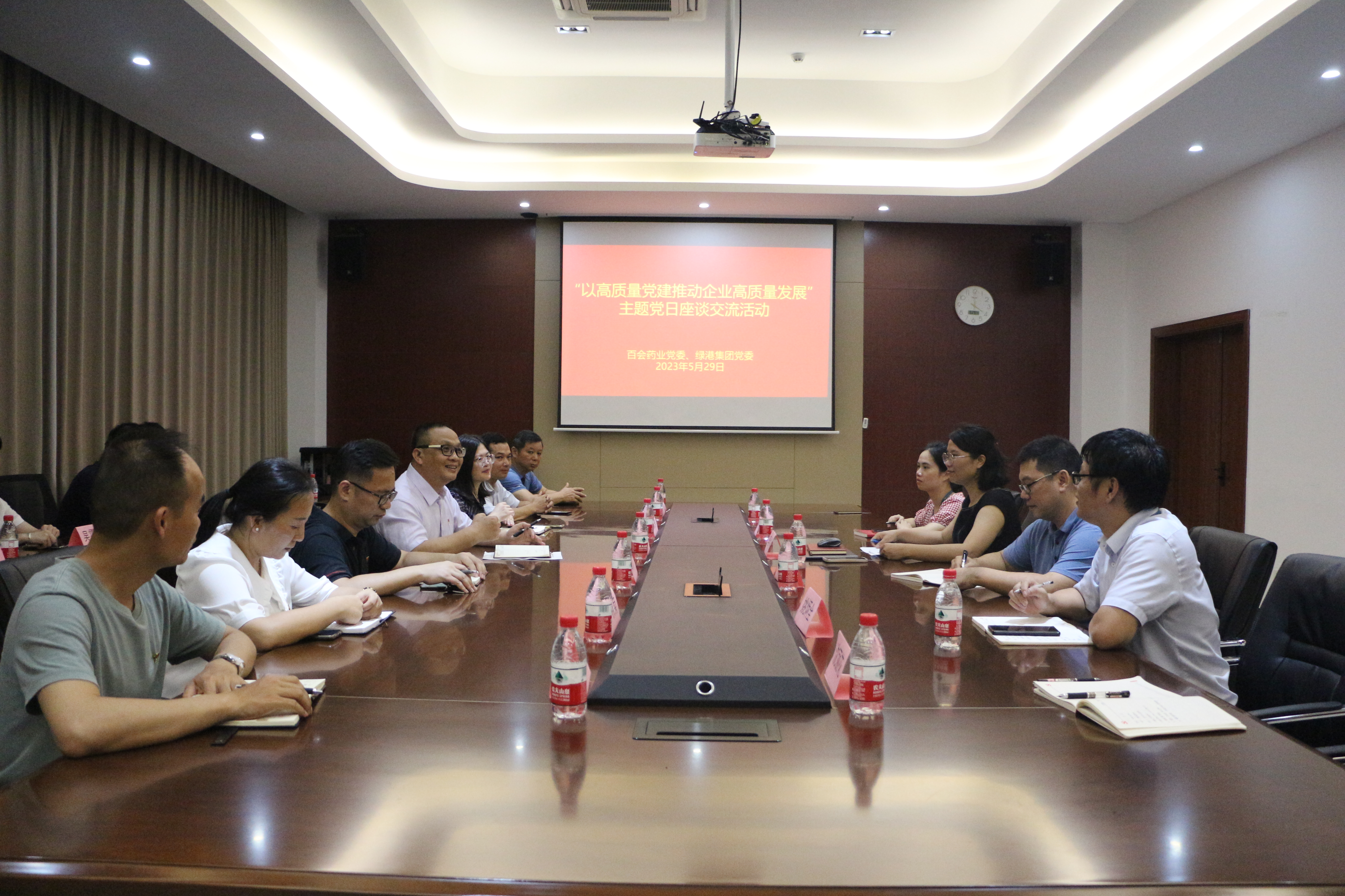 為進(jìn)一步學(xué)習(xí)黨的二十大精神,深入挖掘黨建與生產(chǎn)經(jīng)營有效融合的方式方法,實(shí)現(xiàn)以高質(zhì)量黨建推動(dòng)高質(zhì)量發(fā)展目標(biāo),5月29日,綠港集團(tuán)黨委委員、紀(jì)委書記蘭赤壽帶領(lǐng)集團(tuán)各黨支部黨員代表和團(tuán)總支代表前往廣西南寧百會(huì)藥業(yè)集團(tuán)有限公司進(jìn)行“以高質(zhì)量黨建推動(dòng)高質(zhì)量發(fā)展”主題黨日座談交流活動(dòng)。