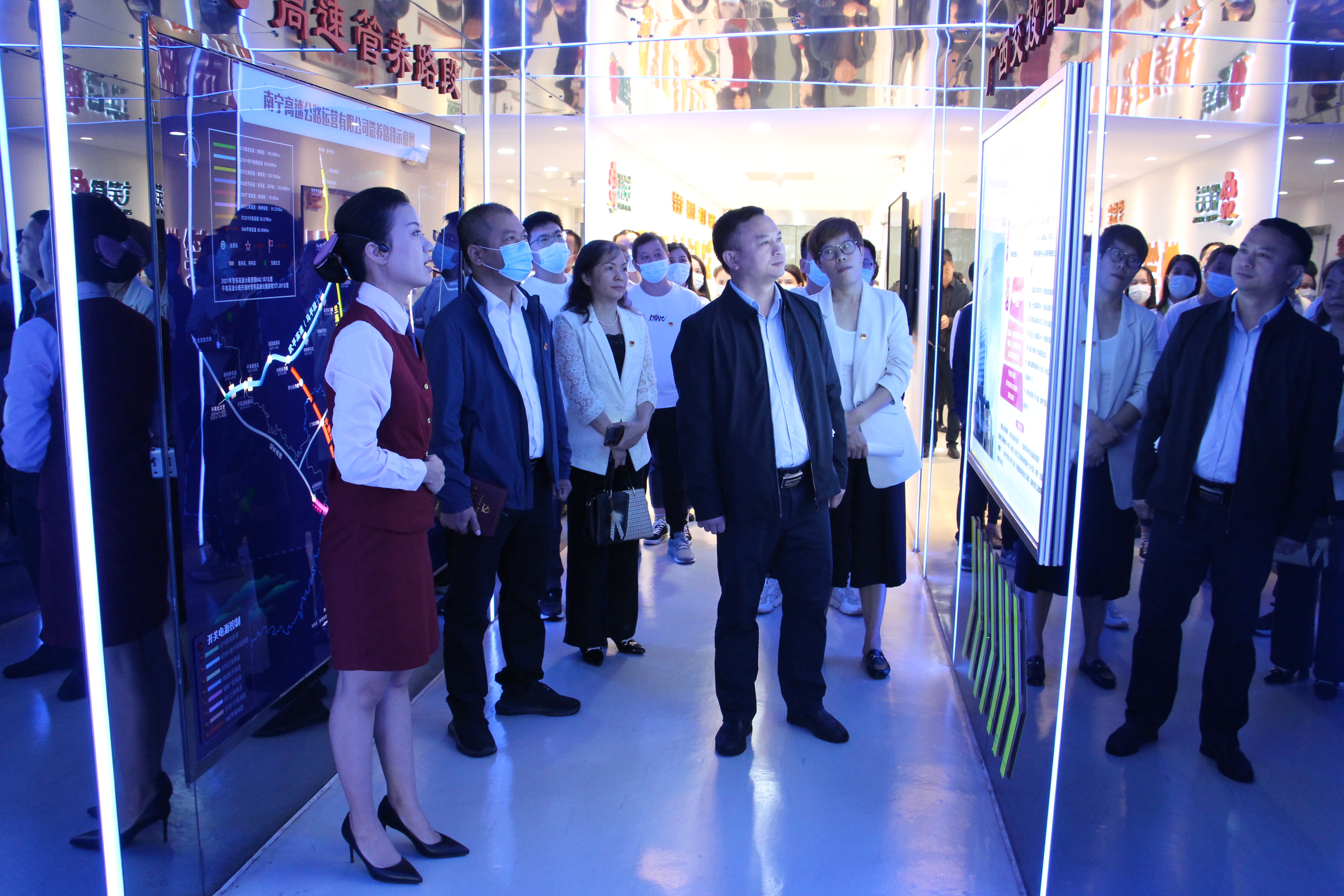 正值學(xué)習(xí)黨的二十大的熱潮時期,為進一步加強黨建聯(lián)建工作經(jīng)驗交流,促進黨支部的黨建管理提升及業(yè)務(wù)發(fā)展,11月18日,綠港集團下屬嘉通公司黨支部紀檢委員、嘉通公司總經(jīng)理何小勇帶領(lǐng)嘉通公司黨支部一行赴廣西交通投資集團南寧高速公路運營有限公司六律基地開展“觀交投佳績示范點 促黨建業(yè)務(wù)上水平”主題黨日活動并進行參觀交流學(xué)習(xí)。嘉通公司黨支部共16名黨員參加此次活動。